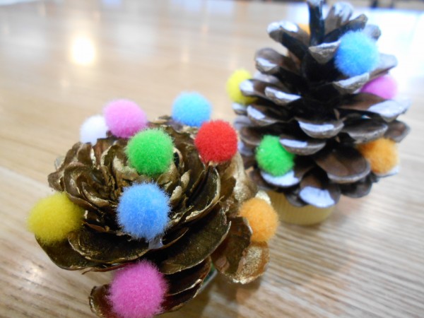 今月の手芸クラブでは松ぼっくりや