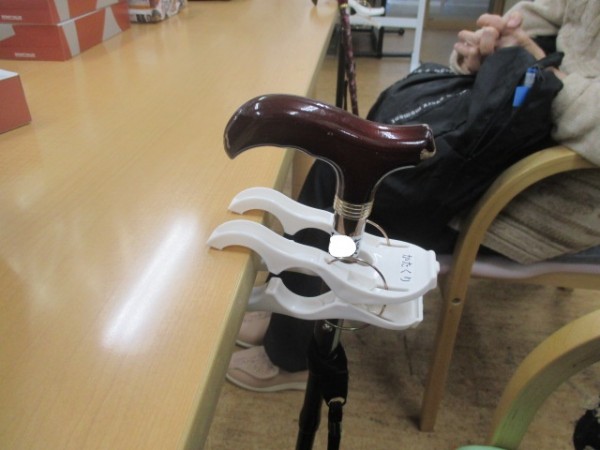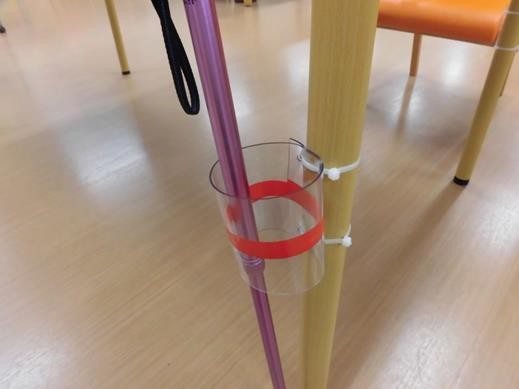 杖を置く→ご自身で置く、使いたい時にすぐ取り出せる→長年の悩みどころでした。ラップの芯、チップスターの入れ物、すぐに壊れてしまうんです(;'∀')
