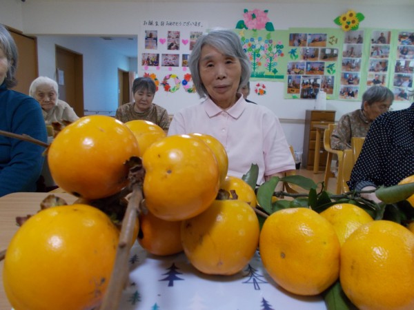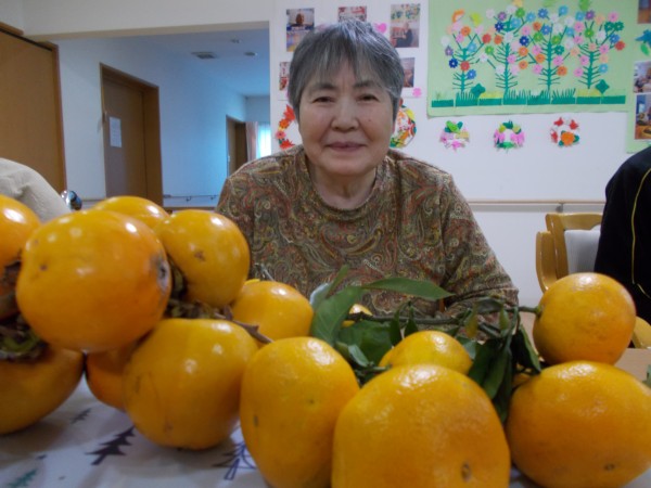 近隣のスタッフが、庭の柿とミカンをもってきました。