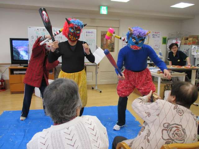 今年の鬼は”心やさしいステキなおじさん鬼”で、ご利用者のみなさま方に存分に"イジッテ”いただき、鬼をはらっていただきました!!