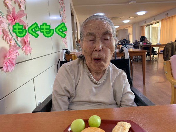 ぶどうを食す入居者様をまだまだお届けいたします。