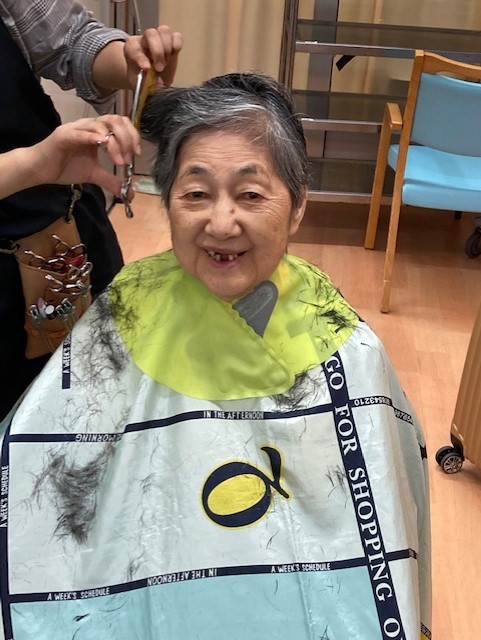 グループホームみんなの家・墨田では定期的に訪問理美容さんが来て皆様の髪をきれいにカットしてくれます。