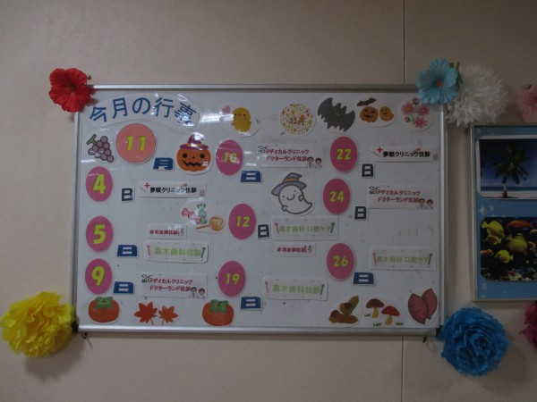 それはさておき、10月末に内装係が11月の予定を貼りだしてくれていました。
