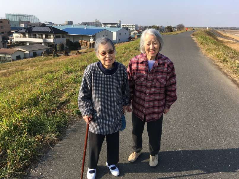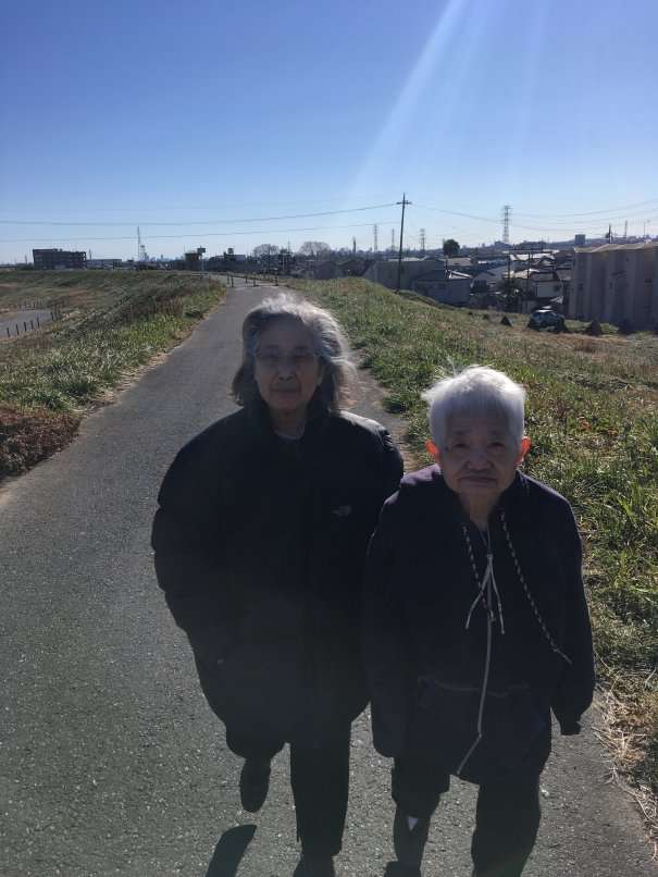 いつものお二人さん、オシャベリに花を咲かせつつ、景色を見ながら足の運動です。