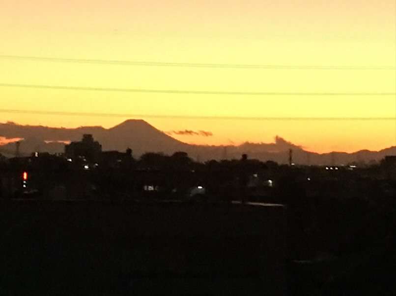 お散歩では来れない時間帯ですが、早朝と夕方には、赤富士とシルエットが楽しめます。