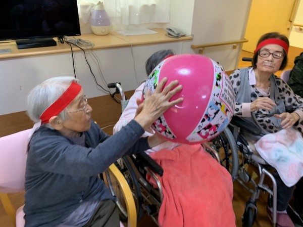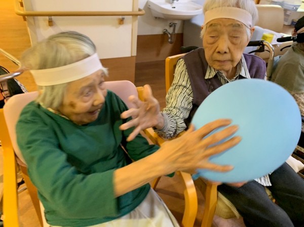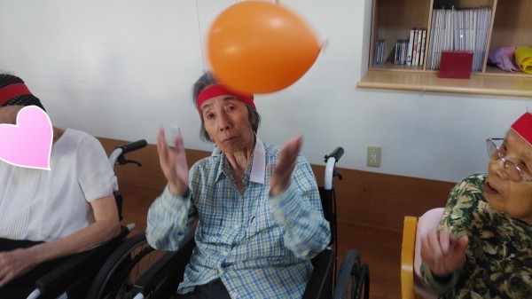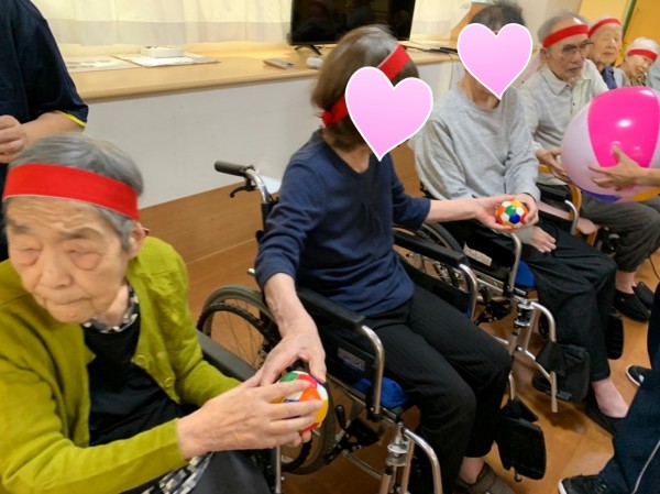 いつもの日常を過ごす中で普通に体操があり、入居者様それぞれの動きの中でこうやって行事を思いっきり楽しみます。