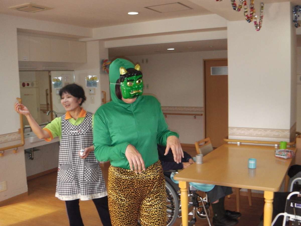 あの鬼のような顔の施設長が・・・お、お、鬼と事務所で戯れてました~(どういうこと?いいの?施設長~鬼は外デショ)