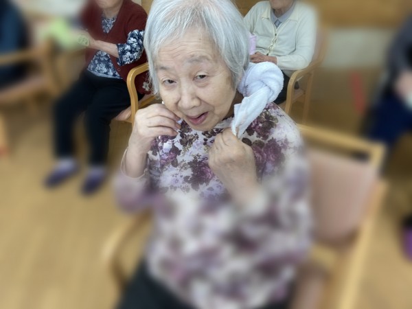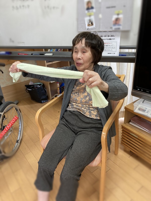 お年寄り向けの座ってできるタオル体操で心と体をリフレッシュして頂きましたー!!
