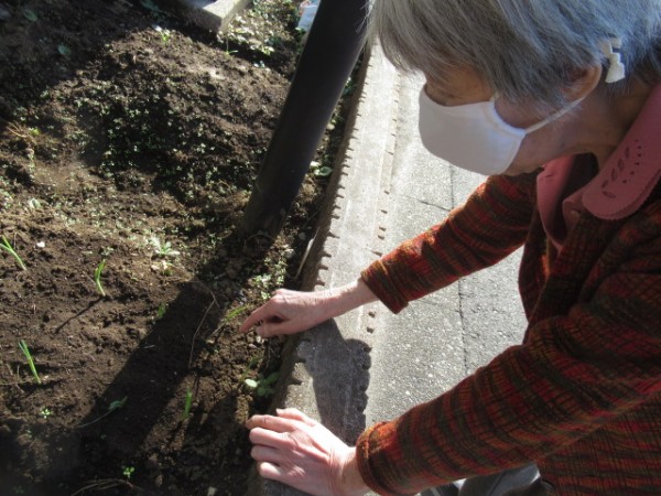 先日のブログでアップしましたが、10月末に9種類の野菜の種をホーム前の畑にまきました。