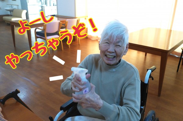 ↓こちらのご婦人、何やらスプレーボトルを持って
