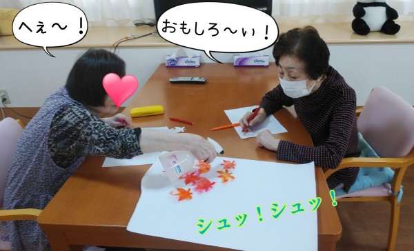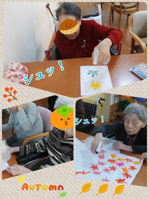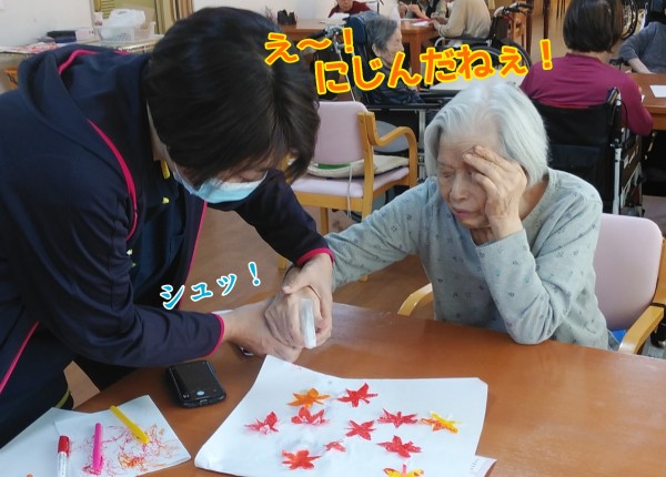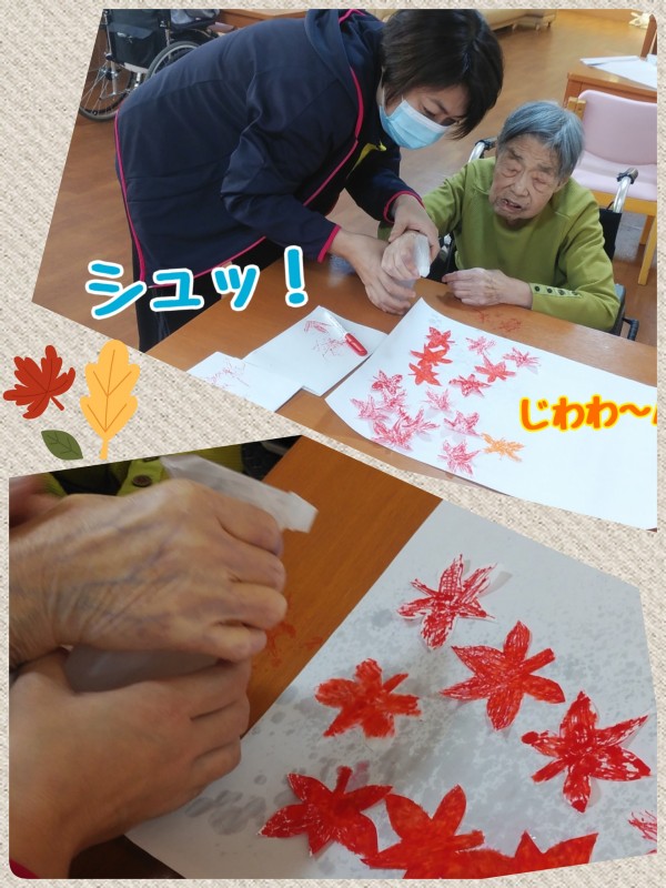 全て、ご入居者様が色付けし、にじませて作られた『もみじ』!!