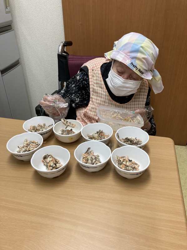 日々の生活の中で、利用者様が家事をされている様子です。盛り付けもお手のもの。「主婦だったのよ~。」感謝です!!