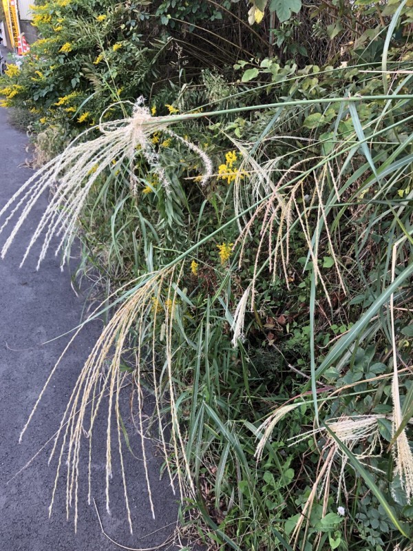 街にはブタクサ(写真左/上)やススキ(同中/中)が実り、また多摩川にもさわやかな秋晴れがふりそそいでいます(同右/下)。