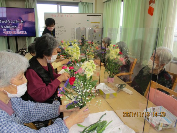 久々のフラワーアレンジメントです。思い思いにお花さしていきました。