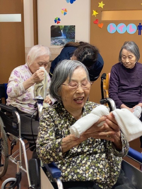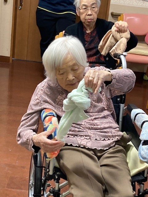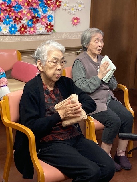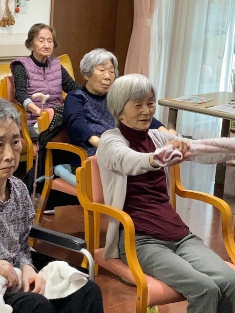 今日はタオルを使った体操です