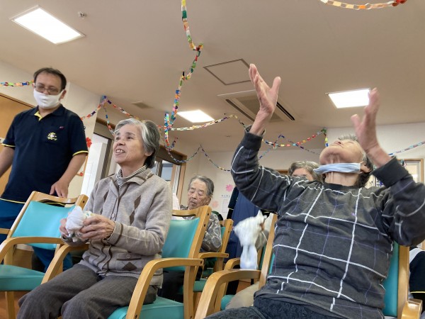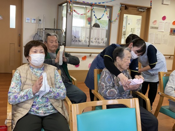 いつも好評のタオル体操では、タオルを投げたり、回したり、たくさん手足を動かされておりました♪