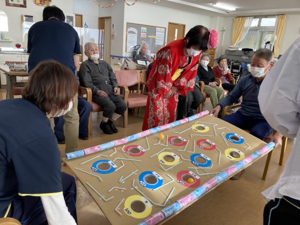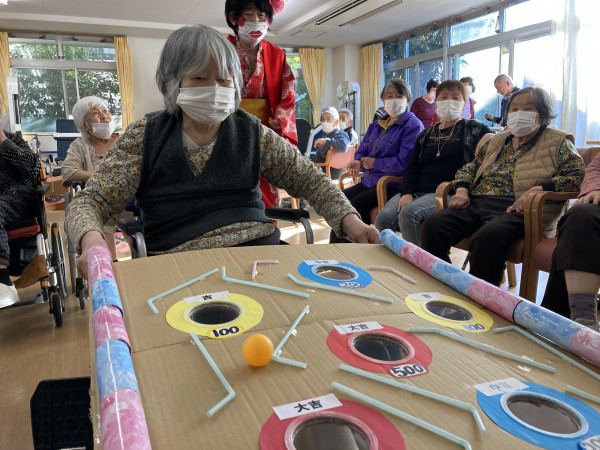 ご利用者様皆さん、時には大きな声で笑い、時には大吉へ真剣にピンポン玉を誘導し楽しんでいらっしゃいました。