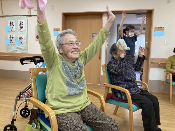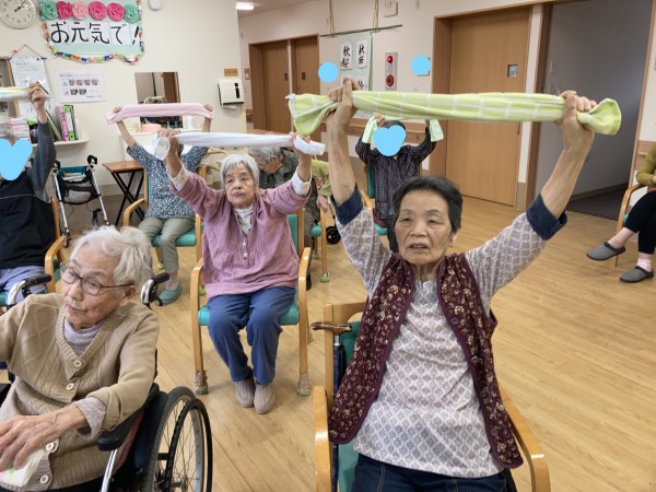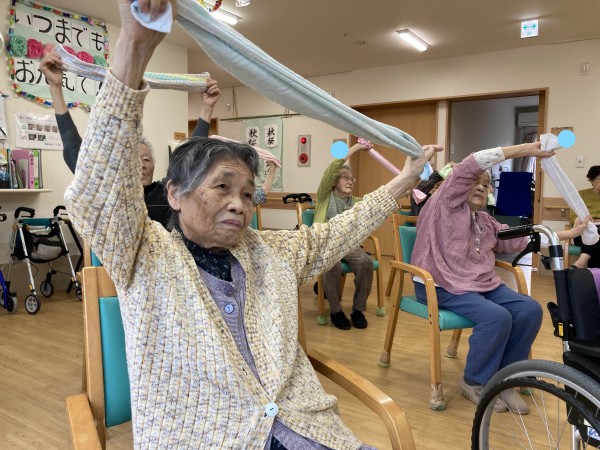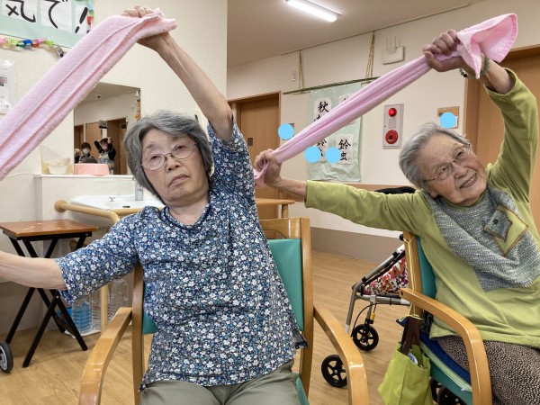 今日も、元気にタオル体操を行いしました。