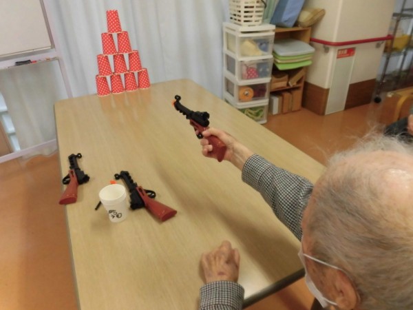 今回紙コップ10個を打ち落とすゲームです。なかなかの白熱した試合風景になりましたので見ていきましょー
