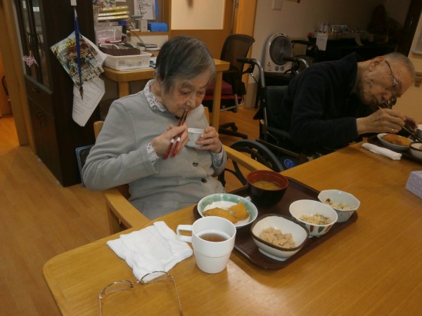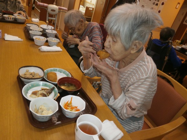 今日のお昼は行事食プラスお稲荷さん。おかずが3品もあり、豪華版です。皆さん、お稲荷さんを真っ先に召し上がっていました。②