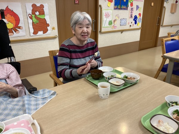 今日はフレイル予防献立でした。フレイルとは、、、。あまり聞き馴染みのない言葉ですが、「加齢により心身が老い衰えた状態」の事です。高齢者のフレイルは生活の質を落とすだけでなく、さまざまな合併症も引き起こします。「糖質」「脂質」「タンパク質」の三大栄養素、特に高齢者に不足しがちなタンパク質をしっかり摂るメニューとなっており、皆さん、バランスの取れた食事をしています。よく噛んで召し上がって下さい。