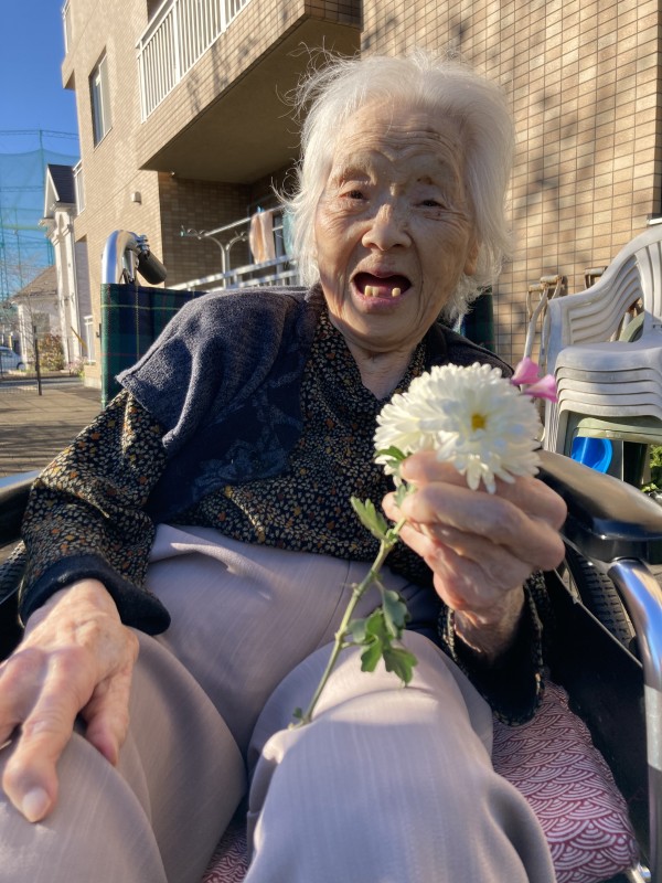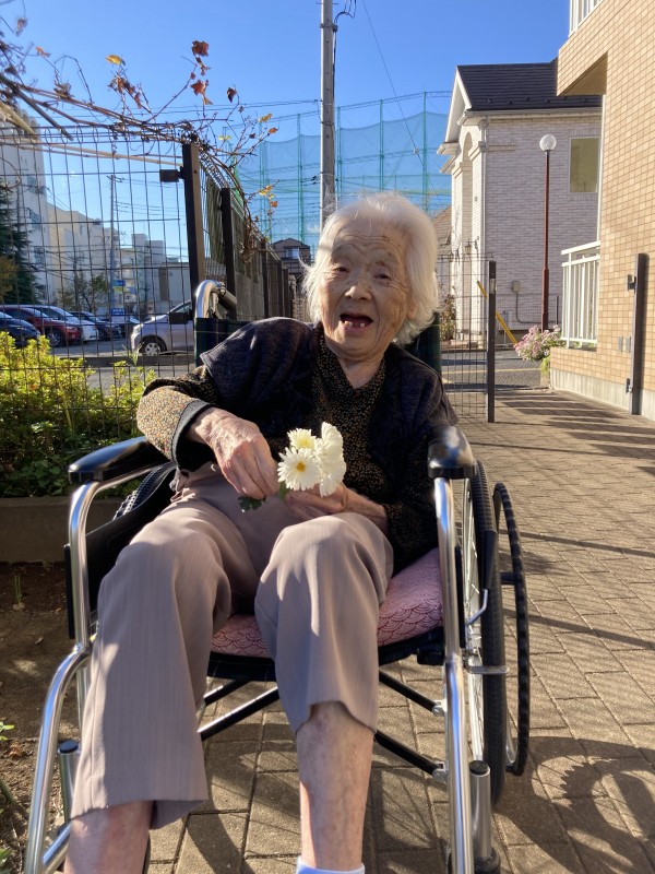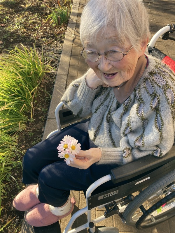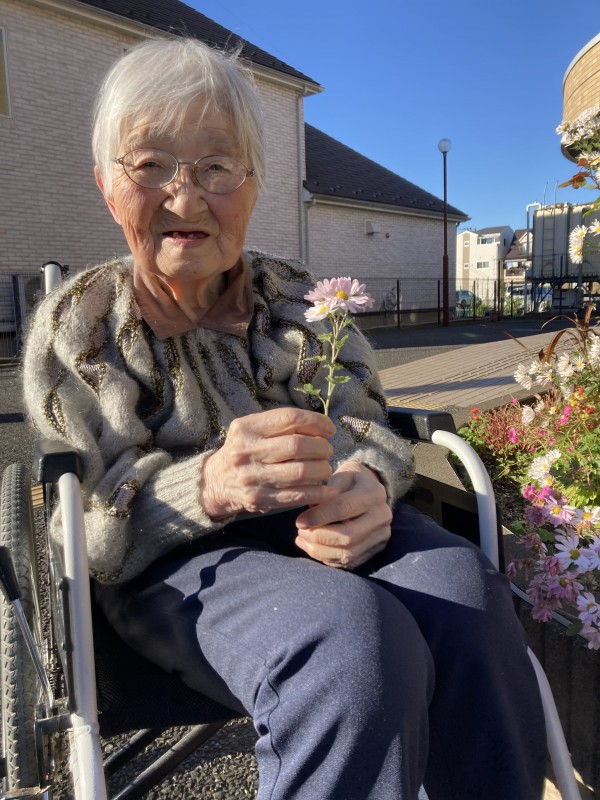 1階のご入居者様と日光浴(外気浴)を行いました。