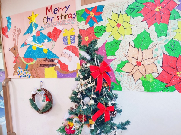 尋ねると皆様で力をあわせて手作りのクリスマスツリーを作成中との事。