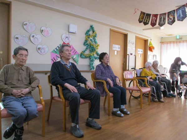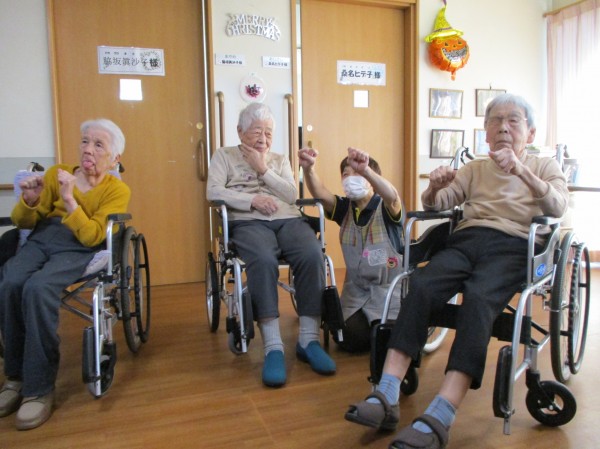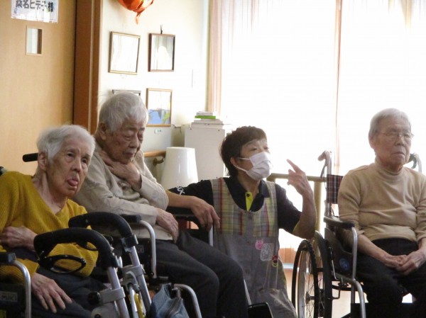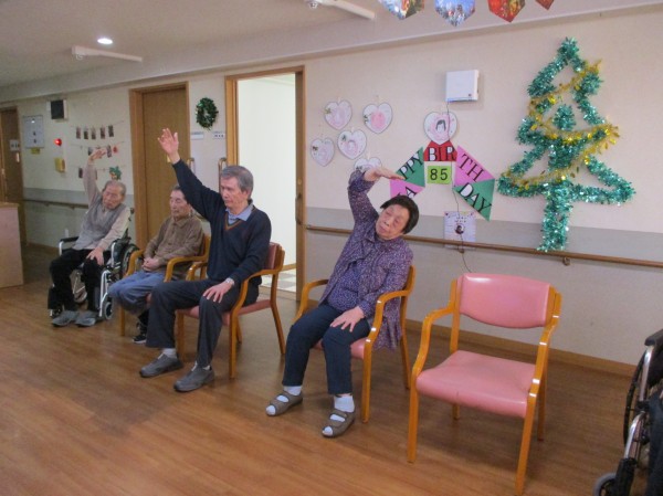 職員と一緒に参加され、体操が難しい場合は職員がお手本になっておこないました。