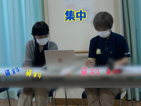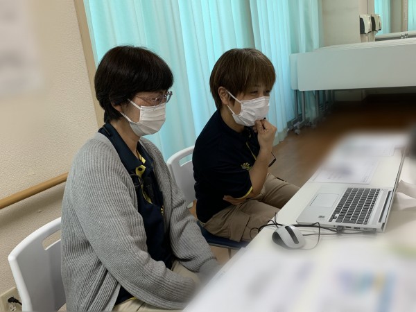 今回は、こちらの樺山ケアマネージャーと沖崎ケアマネージャーがケアプラン研修をzoomで受けております。