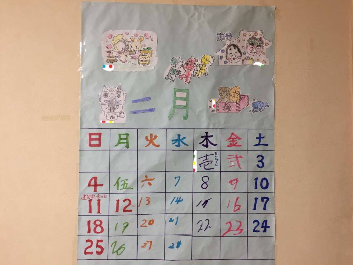 毎月、入居者様にはカレンダーを作ってもらっています。