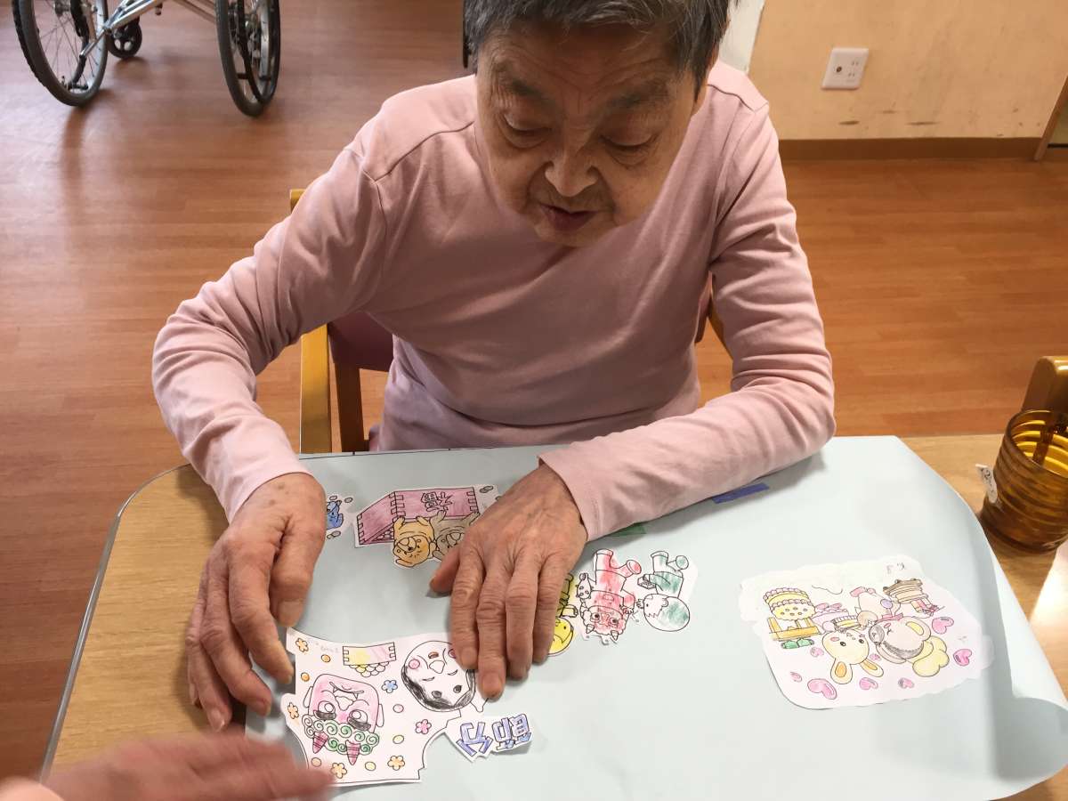 塗り絵の準備と塗り絵のカットと壁に貼り付けの手伝いです!