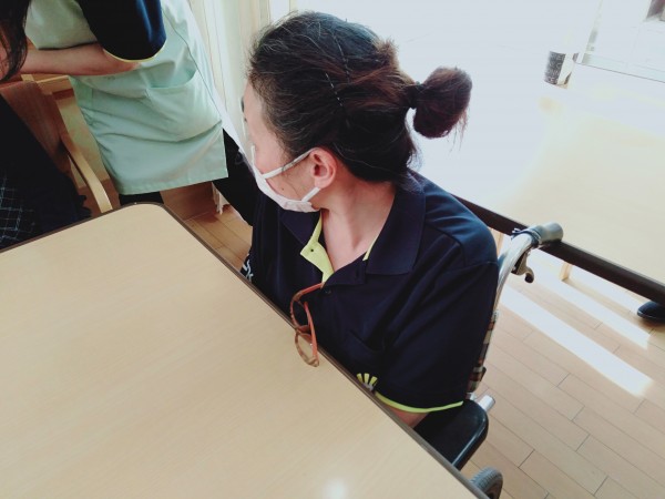 今回も前回同様、『4点柵した状態でのベッド臥床』、『右麻痺がある状態での車椅子操作』、『テーブルとテーブルの間に抑制された状態で過ごす』を体験しました。