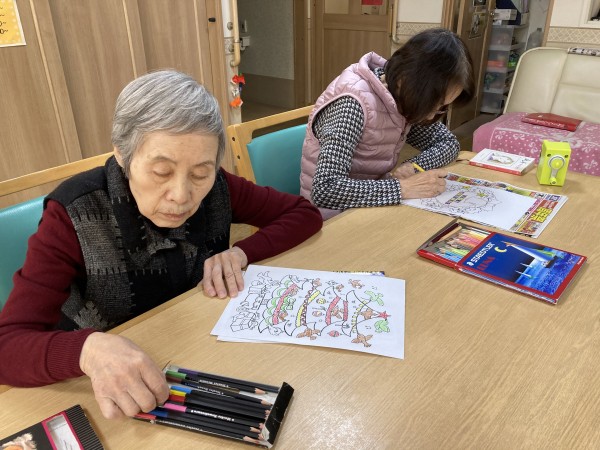 ご入居者様に12月塗り絵をしていただきました。