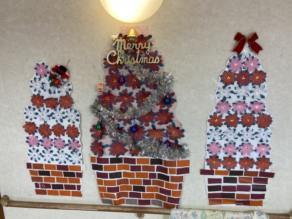 各フロアでクリスマスの壁飾りの準備を始めています。毎日少しずつ楽しく頑張っています。
