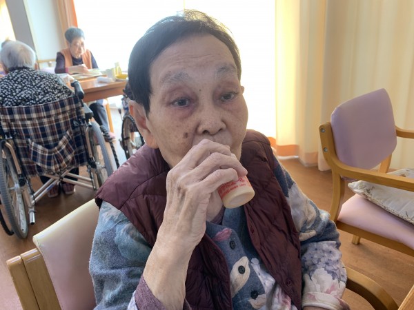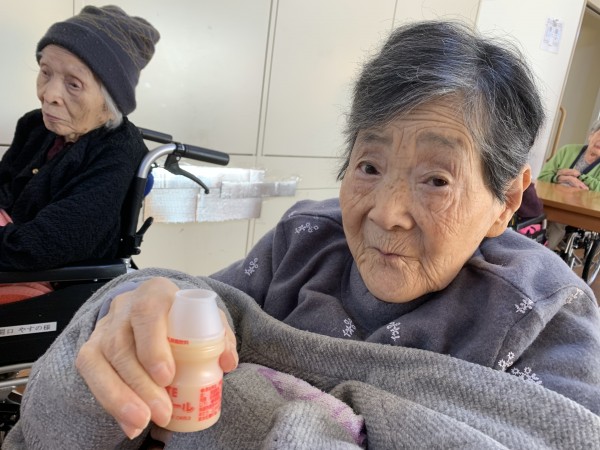 最近お仲間になった入居者様もまずはヤクルトを飲みながら。。。