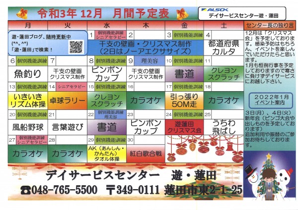 デイサービスセンター遊・蓮田☎:048-765-5500