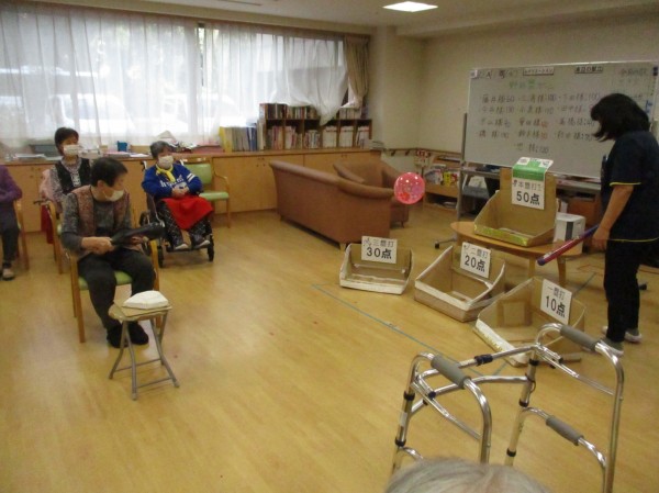 今日の運動レクレーションは『野球盤』です!2本のバット(太いタイプ・細いタイプ)のどちらかを選び