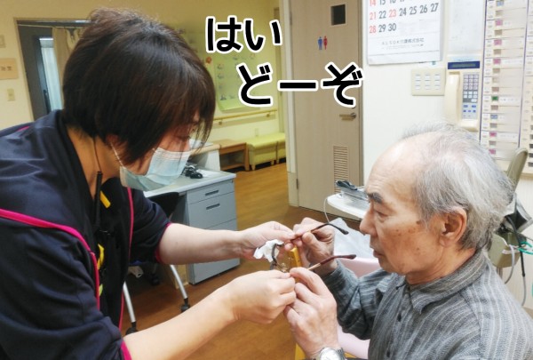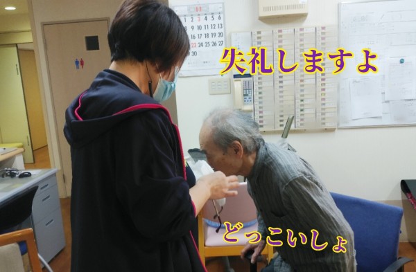 今日も、ほら…困り顔のご入居者様がいらっしゃいましたよ