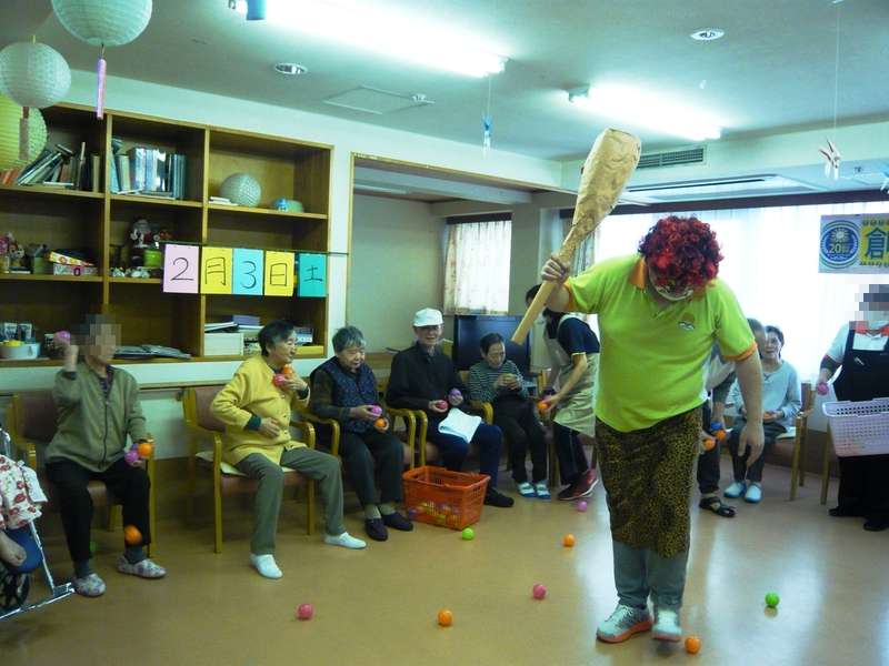 皆様、豆の代わりにボールを鬼(ホーム長(笑))