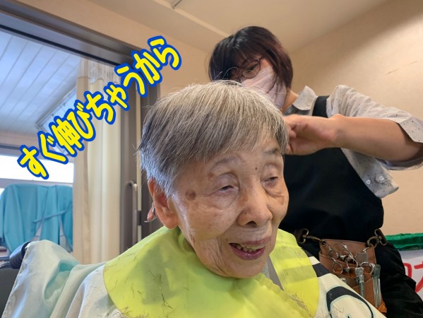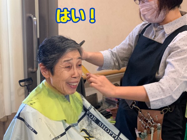 こちらは、ヘアカラーの待ち時間の入居者様とお喋りしながら待ちます。