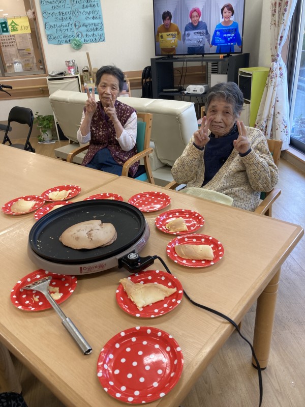 ホットプレートでケーキを焼いて、お祝いいたしました。