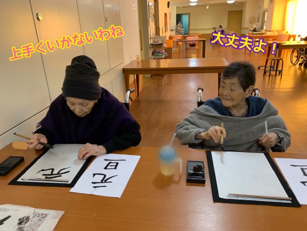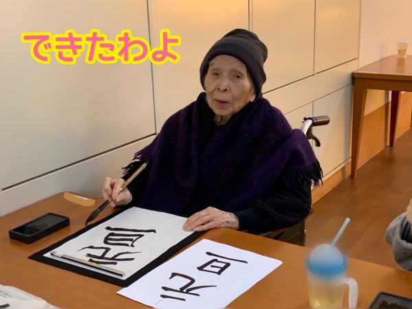 すこや家西尾久 書道レクリエーション。。やってみよう編