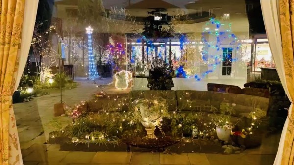 冬に向かって庭が寂しくなるころ夜の中庭を彩るクリスマスイリュミネーションがスタートしました♪