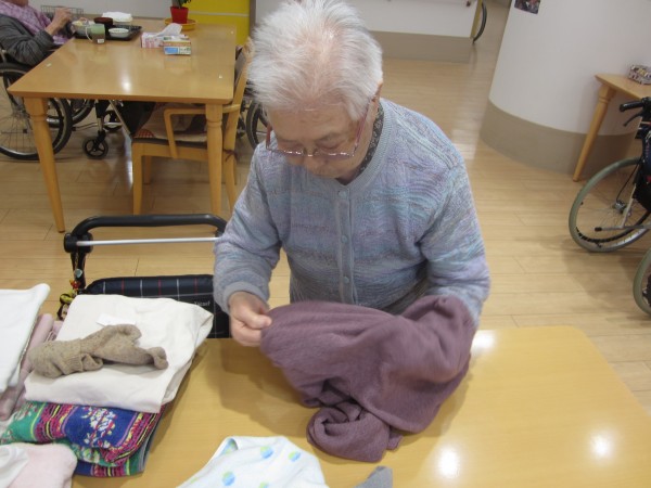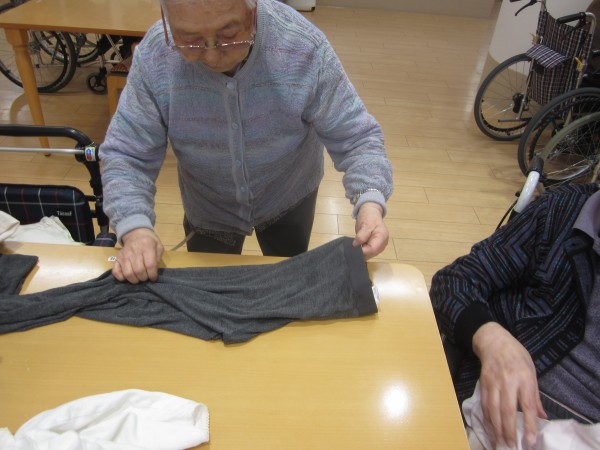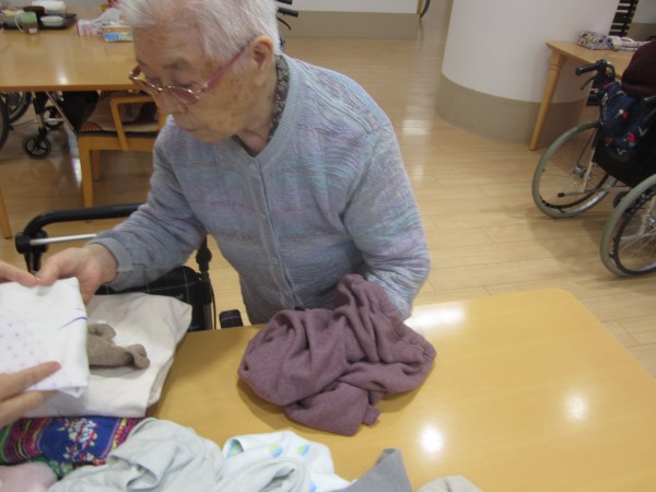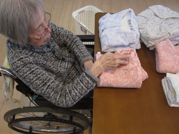ご利用者様が集まり衣類を畳んで下さいます(#^^#)