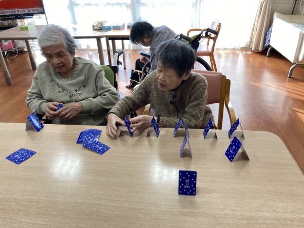 いつもは他の利用者様と「七並べ」をしていますが、今回は「ピラミッド」に挑戦!