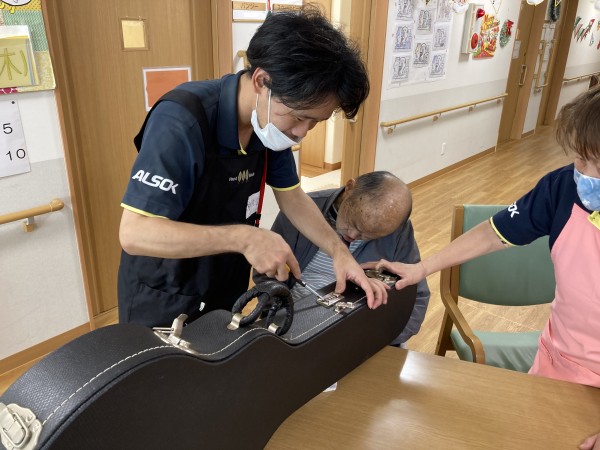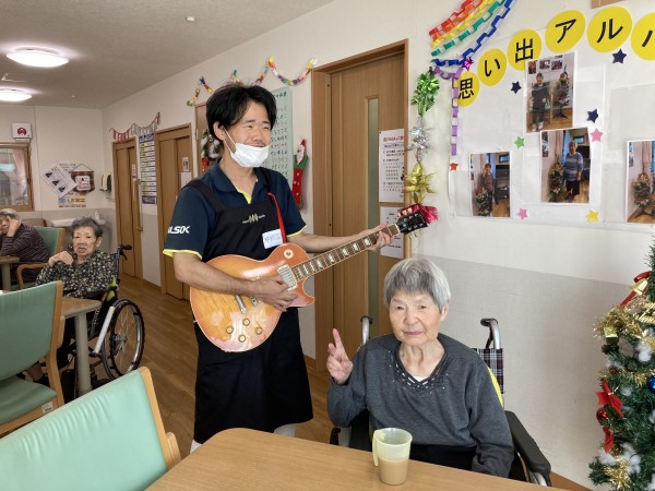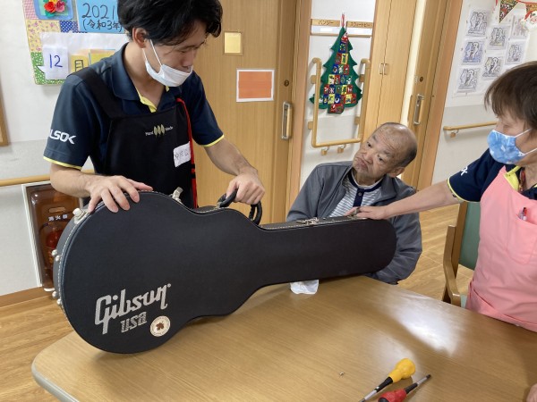 M様、他スタッフ利用者様もお洒落なギターにご満悦♪