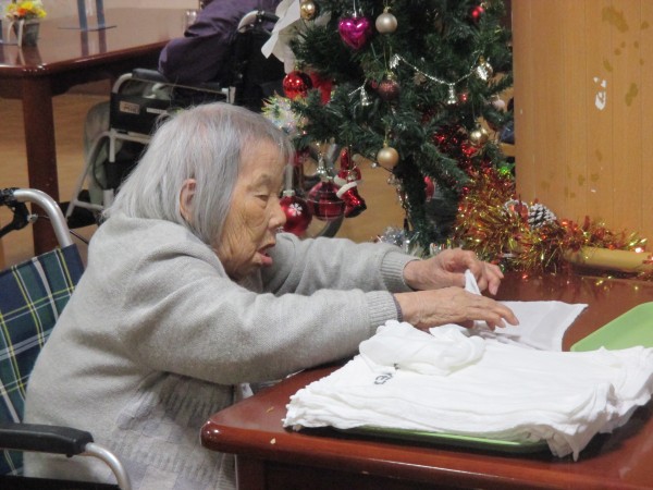 本日は、ご利用者様がおしぼり作りをお手伝いして下さったので、