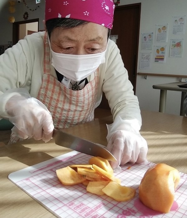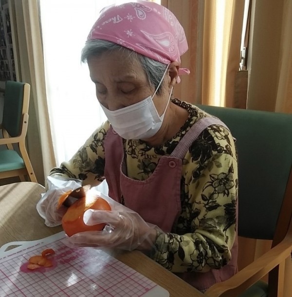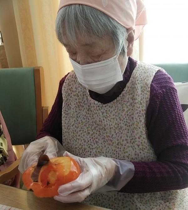 皆様包丁を使い上手に使って、柿の皮むきをされていますね♪