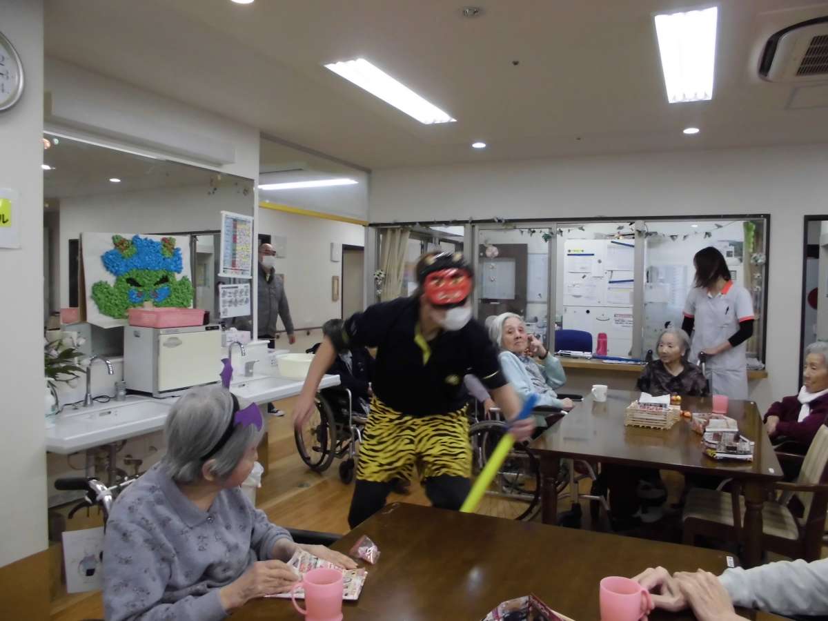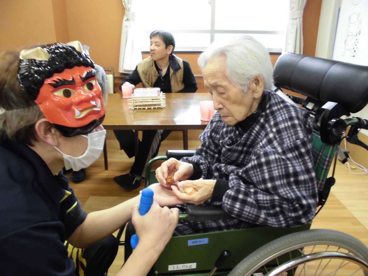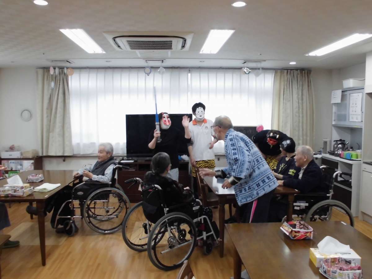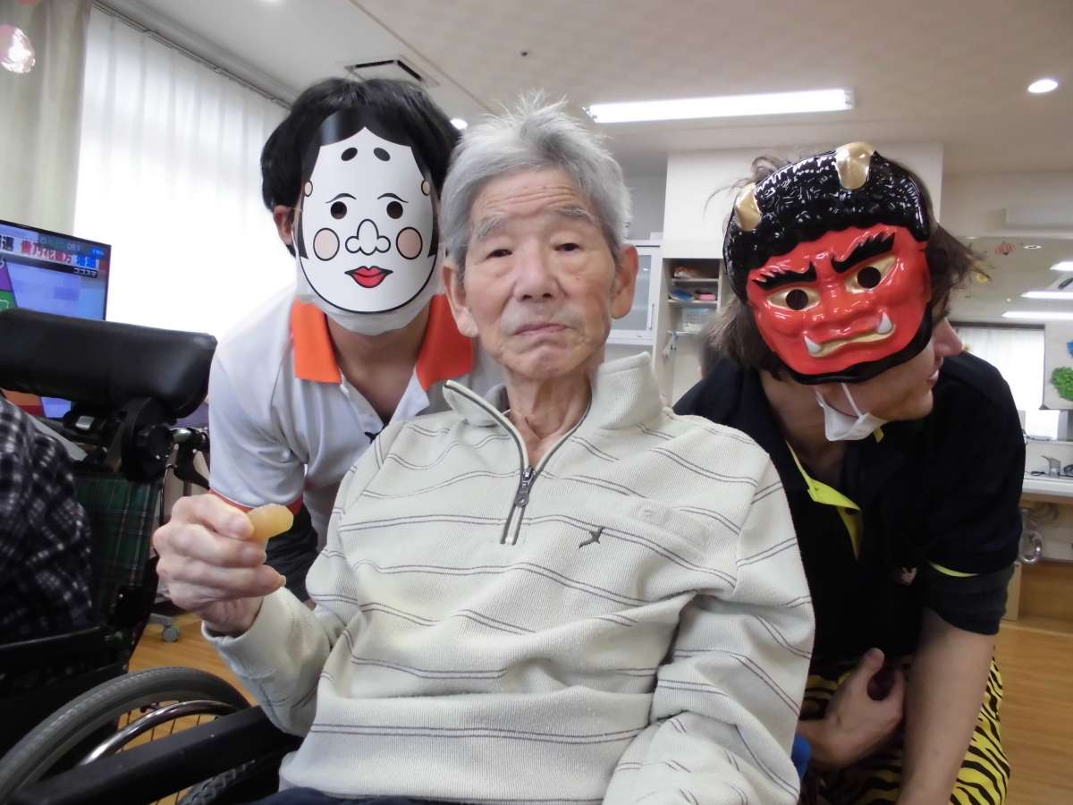介護付有料老人ホームみんなの家七里新堤では2月2日に一日早く節分のレクを実施しました