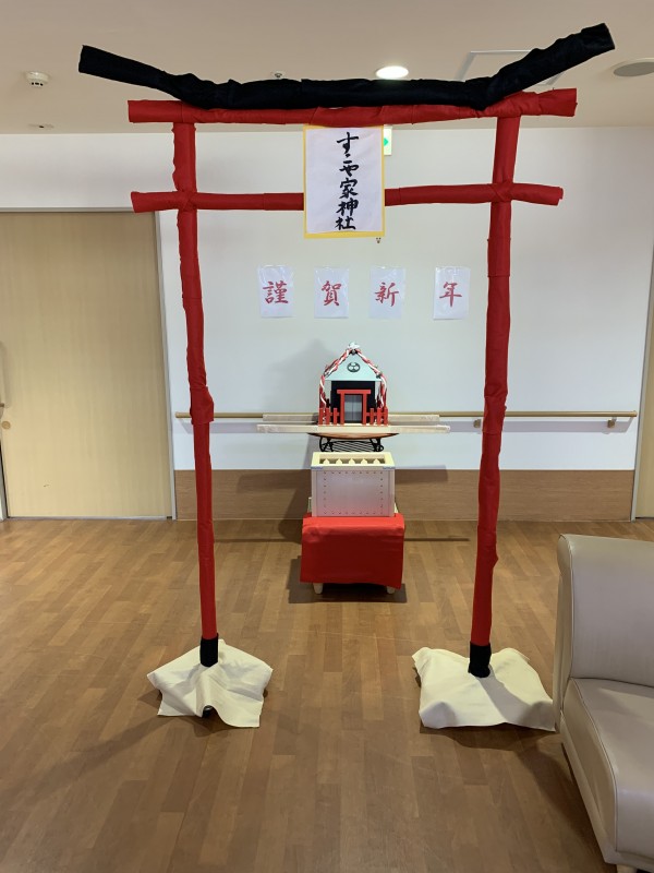 今年の正月に入居者様達と初詣をした手作り神社。